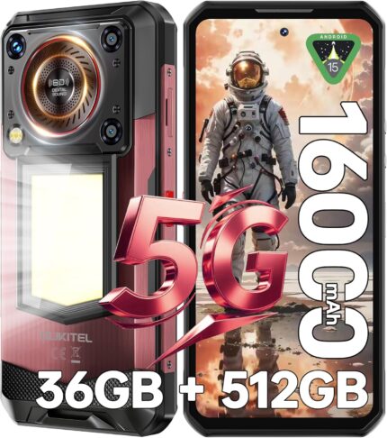 OUKITEL WP56 5G Rugged Phone Unlocked, 36GB+512GB Cellphone, 16000mAh(45W) Battery, 1000LM Camping Light, 6.8″ FHD+Display, 108MP Camera, 128dB Loud Speaker,5G Dual SIM Android 15 Smartphone/NFC/GPS