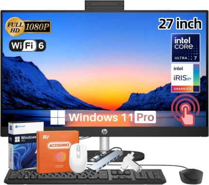 HP 27 Inch All in One Touchscreen Desktop Computer, Intel Ultra 7 155U(Up to 4.8GHz), Intel IrisXe, FHD Anti-Glare Touchscreen, 64 GB DDR5, 4 TB SSD, Windows 11 Pro, Accessories, Jet Black