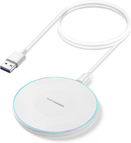 15W Fast Wireless Charger Pad,Wireless Phone Charging Station Compatible with iPhone 14/15/13/12/11/SE/X/AirPods,Fast Charge for Samsung Galaxy S23/S22/S21/S20/Note 20/Buds/Buds (White) (White)