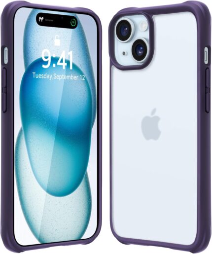 Mkeke for iPhone 15 Case, [Not Yellowing] [Military-Grade Drop Protection] Clear Phone Cases for Apple iPhone 15 with Shockproof Bumper 2023 – Purple