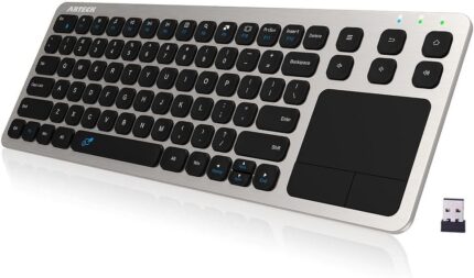 Arteck 2.4G Wireless Touch TV Keyboard with Easy Media Control and Built-in Touchpad Mouse Solid Stainless Ultra Compact Full Size Keyboard -Connected Computer, Smart TV, HTPC