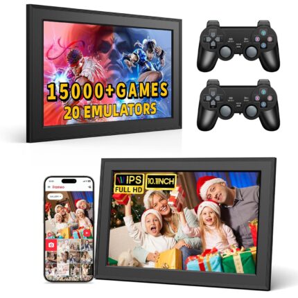 DG6401 New Gaming Console with 10.1 Inch Frameo WiFi Digital Picture Frame 2K HD Output, 18000+ Plug and Play Video Games, 23+ Emulator Console 2 in 1 Video Game Console with 2 Wireless Controllers