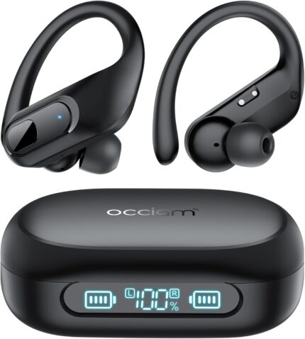 occiam Wireless Earbuds Bluetooth Headphones Ear Buds 96Hrs Playback Sport Over-Ear Waterproof Wireless Headphones Earphones with Earhooks ENC Mics Clear Call for Sport Running Workout Black