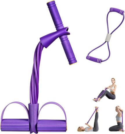6-Tube Pedal Ankle Puller Resistance Bands with Free Figure 8 Exercise Bands Included,Pedal Puller Resistance Band with Handle for Home Gym,Yoga & Pilates,Ideal to Tone Arms,Abs,Waist Unisex
