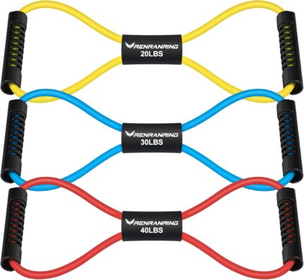RENRANRING Figure 8 Fitness Resistance Bands with Handles – Exercise Tube Band Set of 3 for Arm and Shoulder Stretch, Rope 8 Word Elastic for Women and Men
