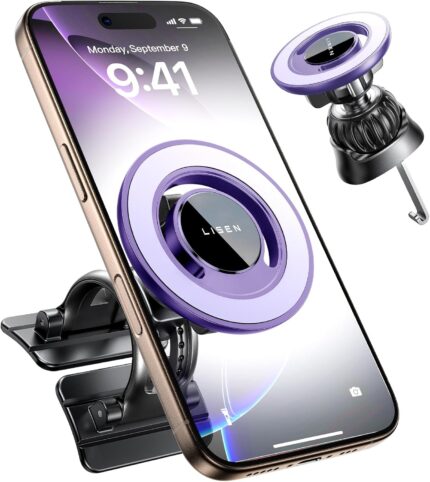 LISEN Fits MagSafe Car Mount Car Phone Holder,Strong Magnetic Phone Holder for Car Magsafe, Dashboard Vent iPhone 16 Car Mount Holder Car Accessories for iPhone 16 15 14 13 12 Pro Max,Purple