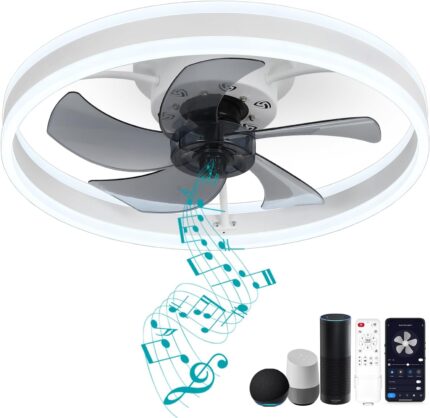 Lumary Smart Ceiling Fan Light with 2200K Nightlight, WiFi & Bluetooth Low Profile Ceiling Fan with Light Remote for Bedroom, RGBAI & 42 Scenes Mode, Flush Mount Easy to Install, 5000 LM, 19in White
