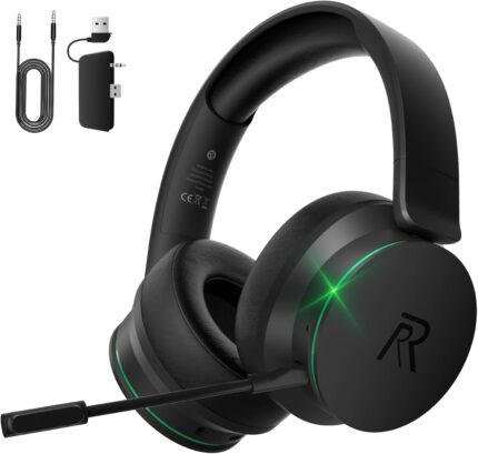 RYR Wireless Gaming Headset for Xbox Series X|S, Xbox One, PS5, PS4, Mac, Bluetooth 5.3, 3D Surround Sound, Rotatable Earmuffs, Gaming Headphones with Noise Canceling Microphones-Blackgreen