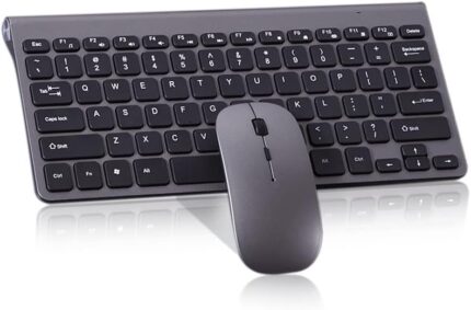 Wireless Keyboard and Mouse Combo, Compact Quiet Wireless Keyboard and Mouse Set 2.4G Ultra-Thin Sleek Design for Windows, Computer, Desktop, PC, Notebook, Laptop (GHKM03)
