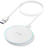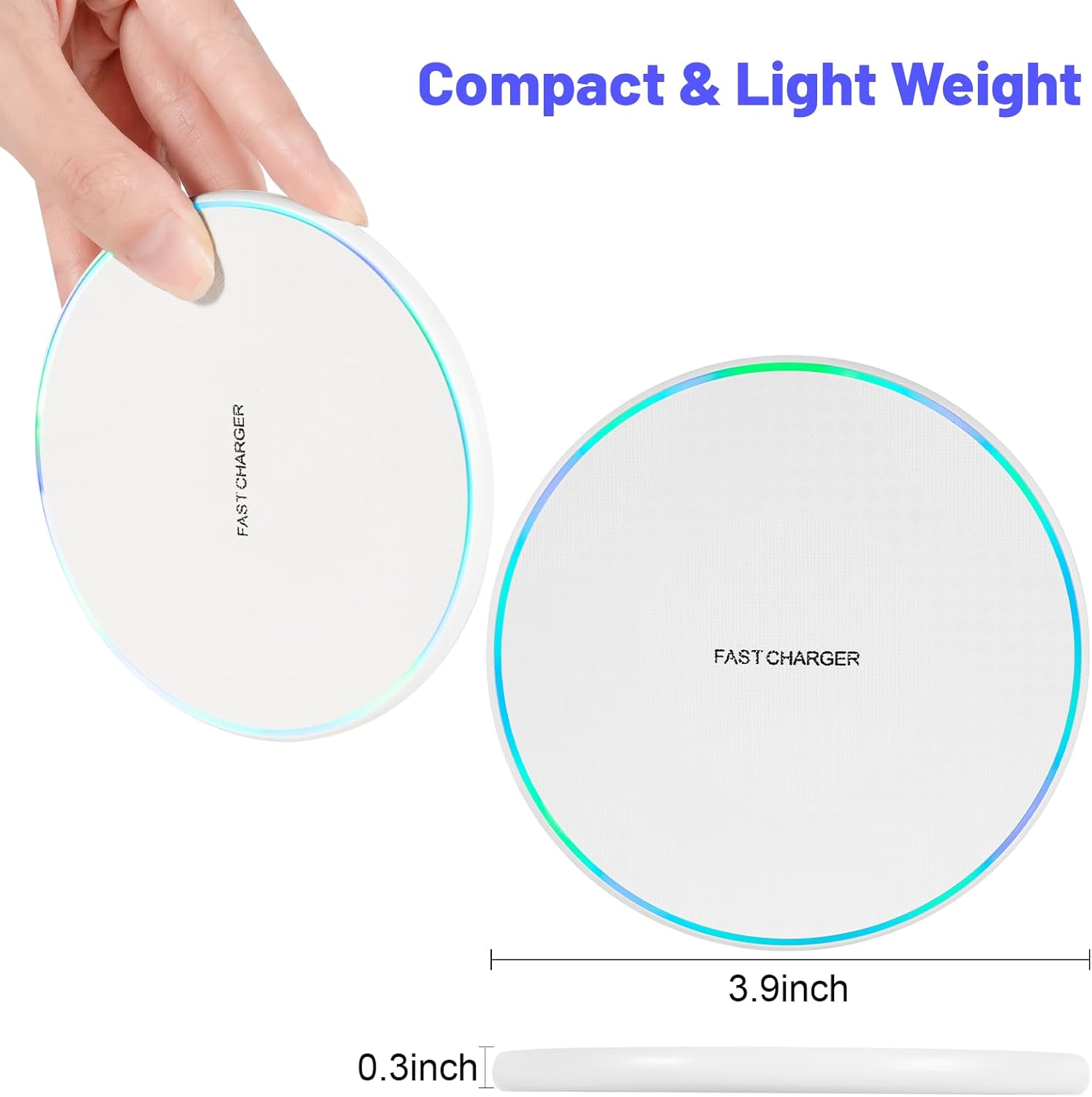 Slim & Portable & Travel Companion: This fast wireless charger is only 13mm/0.5inch Ultra-thin Metal appearance and weighs about 105g,round arc design, comfortable grip, It’s very light and you can just pack it and go everywhere. Come with a USB A to USB C charging cable(Not Include the wall charger),easy to put in the wallet,pockets, handbags, travel bags. Does not take up any space.