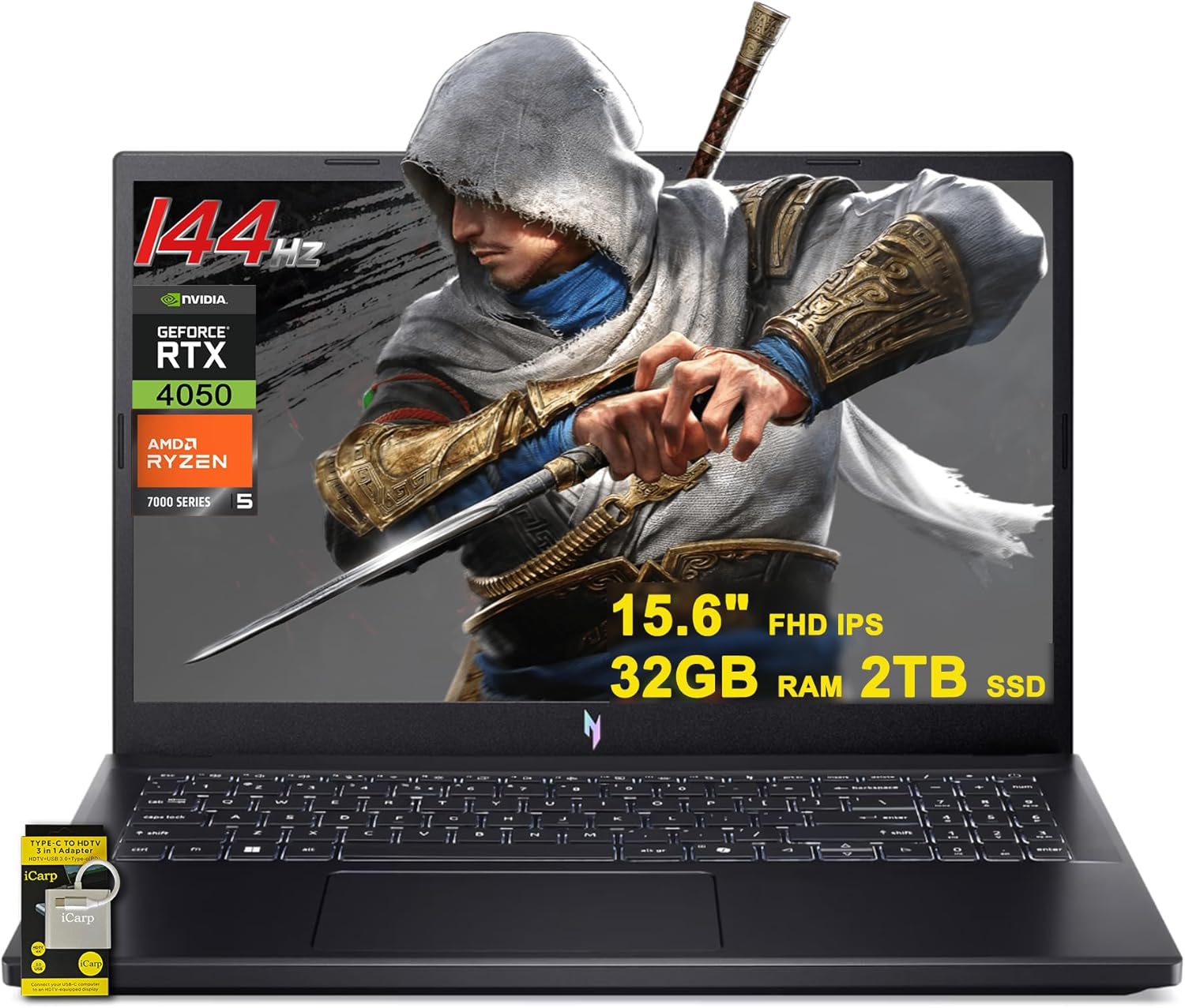 acer Nitro V 15 Gaming Laptop 15.6″ FHD IPS 144Hz AMD 6-core Ryzen 5 7535HS 32GB RAM 2TB SSD GeForce RTX 4050 Backlit USB-C Win11 w/ICP Accessory