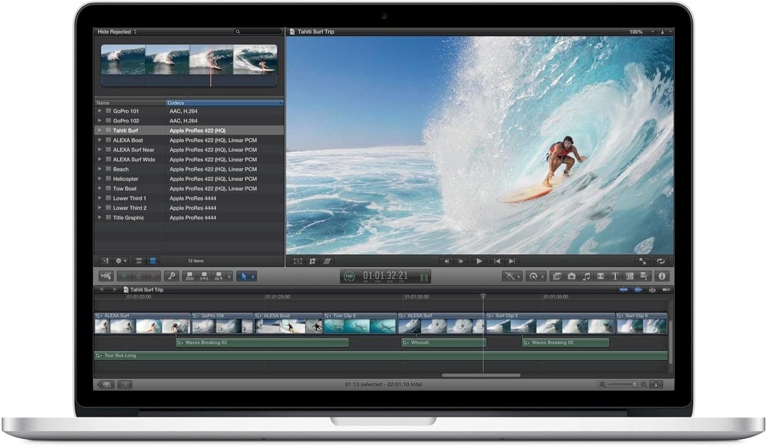 Connectivity includes 3-stream AirPort Extreme (802.11a/b/g/n), Bluetooth 4.0, two USB 3.0 ports, two Thunderbolt ports, an HDMI port, an audio in/out port, and an SDXC card slot