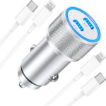 [Apple MFi Certified] iPhone Car Charger, Linocell 60W Dual PD USB-C Poewr Cigarette Lighter USB-C Car Carplay Fast Charger + 2Pack Type-C to Lightning Cable for iPhone 14 13 12 11 Pro XS XR X SE iPad
