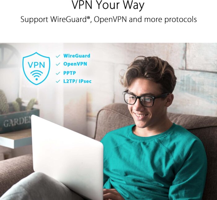 Compelling Speed, Reliable Connectivity with comprehensive built-in VPN network protection provided by advanced ASUS security tech, RT-AX5400 can definitely exceed your imagination of networking experience and work perfectly with your existing WiFi devices*! Let’s gear up for ultra-secure connectivity and powerful performance! Disclaimer: Actual data throughput and WiFi coverage will vary from network conditions and environmental factors, including the volume of network traffic, building material and construction, and network overhead, result in lower actual data throughput and wireless coverage.