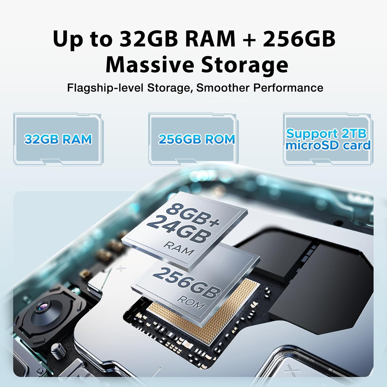 DOOGEE Blade 10 Ultra (2025) Android 15 Rugged Smartphone, 32GB RAM+256GB ROM Rugged Phone Unlocked, 6.56”90Hz Display,50MP Camera, IP68/IP69K Waterproof Phones, Face ID/NFC/GPS/OTG