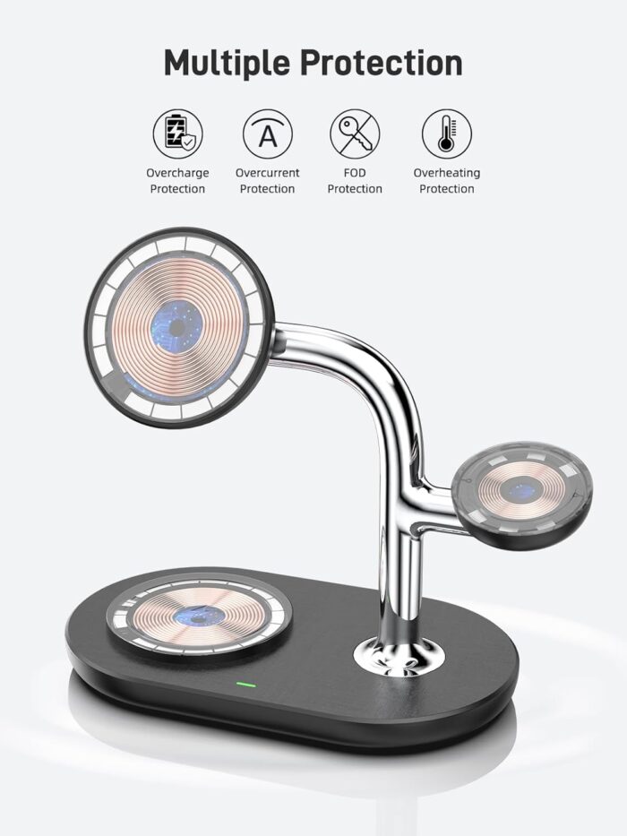 【Charging Station for Multiple Devices Apple】- This dual mag-safe charger can charge your two iPhone, Apple watch at the same time. The base part can also charge the AirPods. It is a wireless phone charging station, an Apple watch charger, iPhone stand holder, and also an airpods charger station. All-in-one design gives you a clean and tidy desktop.