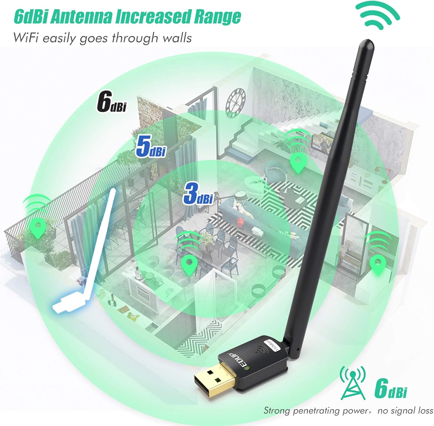 EDUP USB WiFi Adapter for PC, Wireless Network Adapter for Desktop- Dongle High Gain 6dBi Antenna Support Desktop Laptop Compatible with Windows 10/8/7/XP/VISTA, MAC 10.6-10.11
