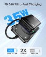 35W Ultra-Fast Charging Power Bank : Stop waiting around for a charge!Our advanced 35W PD3.0 & QC4.0 technology delivers incredible charging speeds: revive your iPhone 16 to 60% or your Samsung Galaxy S24 to 58% in just 30 minutes—noticeably faster than standard 15W-30W power banks. Perfect for busy days and travel.