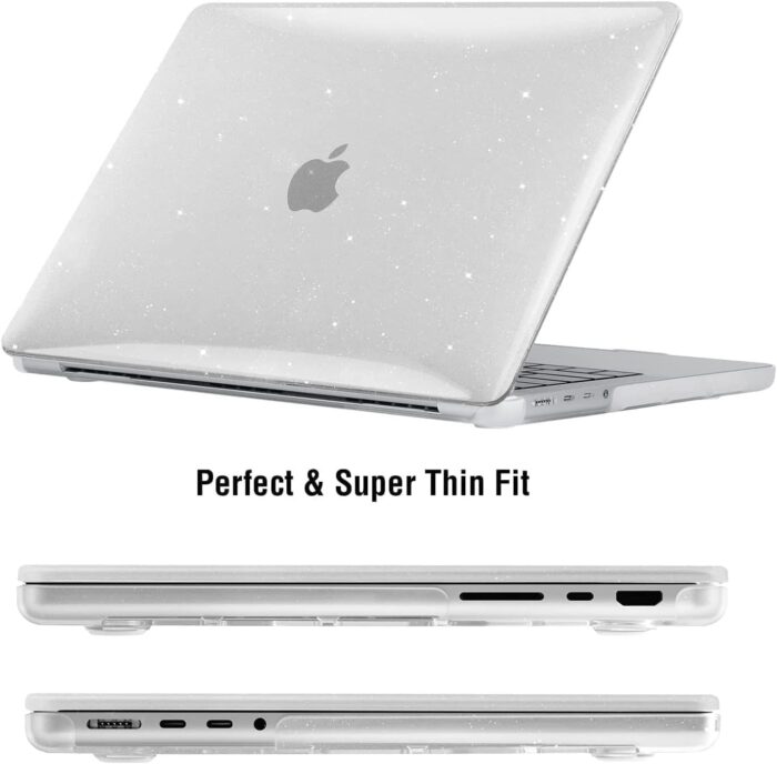 Glitter Clear Design: Showcase your laptop’s original design with a high-transparency, sparkly-clear case. Perfect for maintaining a sleek, unobtrusive look while offering reliable protection