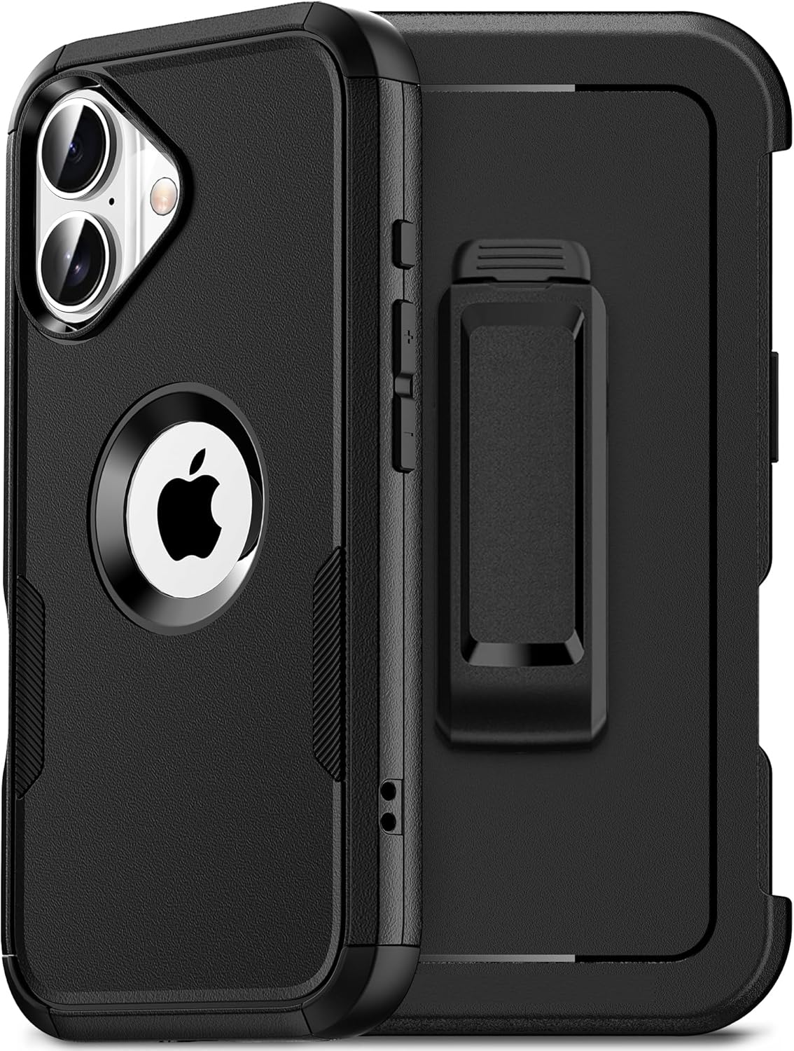 for iPhone 16 Case with Belt Clip Holster,2X Screen Protector, Heavy Duty Protection,Military-Grade Protection,Anti-Drop,Shockproof Phone Cover for iPhone 16 Case,Black