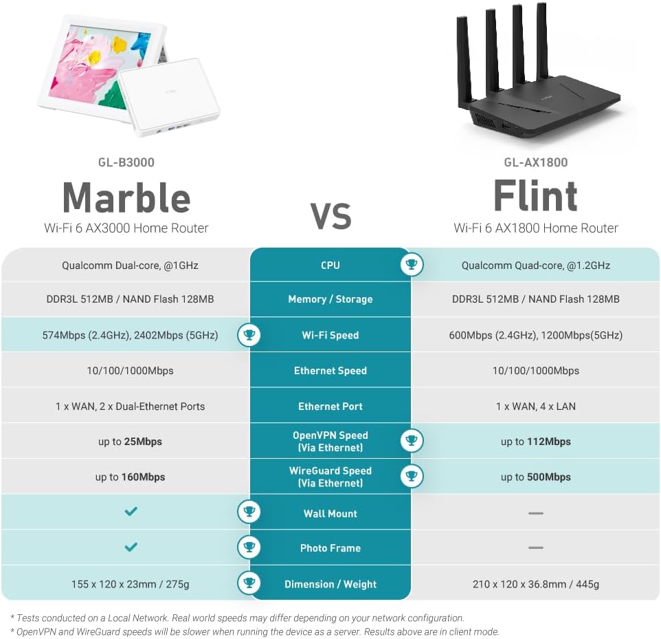 Be the first to review “GL.iNet GL-B3000 (Marble) Wireless WiFi 6 Router with Wall-Mountable Photo Frame, Dual-Band AX3000, OpenVPN & WireGuard, Bark & AdGuard Home Parental Controls, OpenWrt, 3 Gigabit Ethernet Ports”