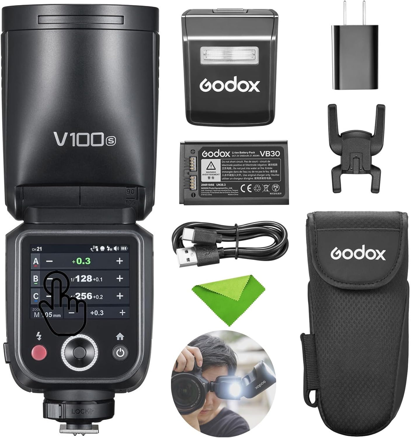 Godox V100S V100-S 100Ws Flash for Sony TTL Speedlight, 400 Full Power Flashes, 1.7s Recycle Time, 2.4G Wireless with External Flash, Touchscreen Speedlite for Sony Cameras (Godox V100S USA Version)
