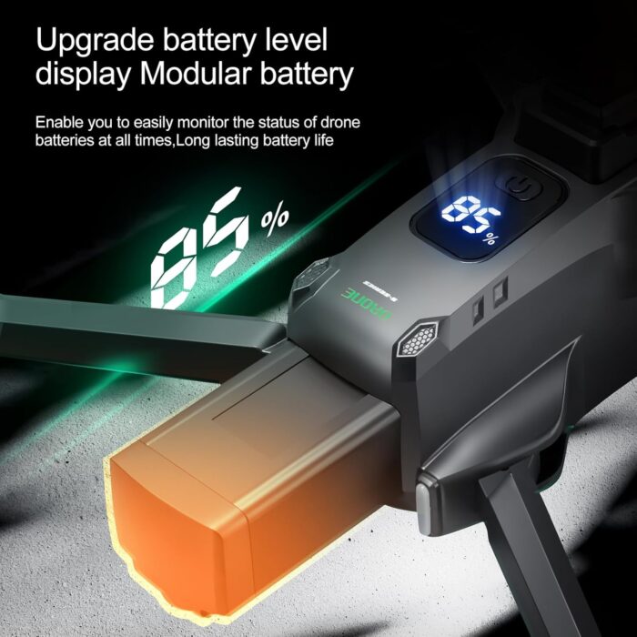 Large Display Screen Remote Controller & Additional Features: The remote controller comes with a large display screen, body battery level display, waypoint flight, orbit mode, follow me mode, photo and video capture,music addition, etc.