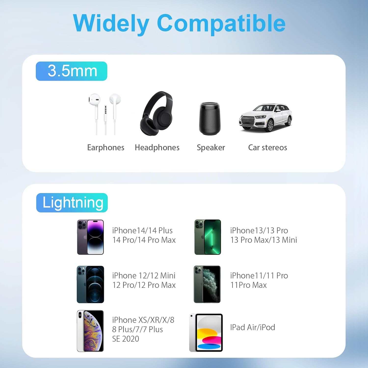 Plug & Play, No Driver Required: Just plug the adapter in your device, let for iPhone equipment recognize the adapter for 3-5 sec before playing music.