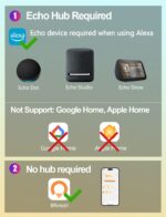 Alexa Voice Control (Alexa Compatible Hub Required): Alexa Voice Control must be used with Alexa speaker. Simply say “Alexa/Echo, find device” to use voice commands to connect the alexa bulb to the network. In fact, when an Alexa speaker is connected to more than 4 lights, it may become unstable. To address this issue, we have developed the Virtual HUB feature, which can support up to 100 lights stably for each Virtual HUB.