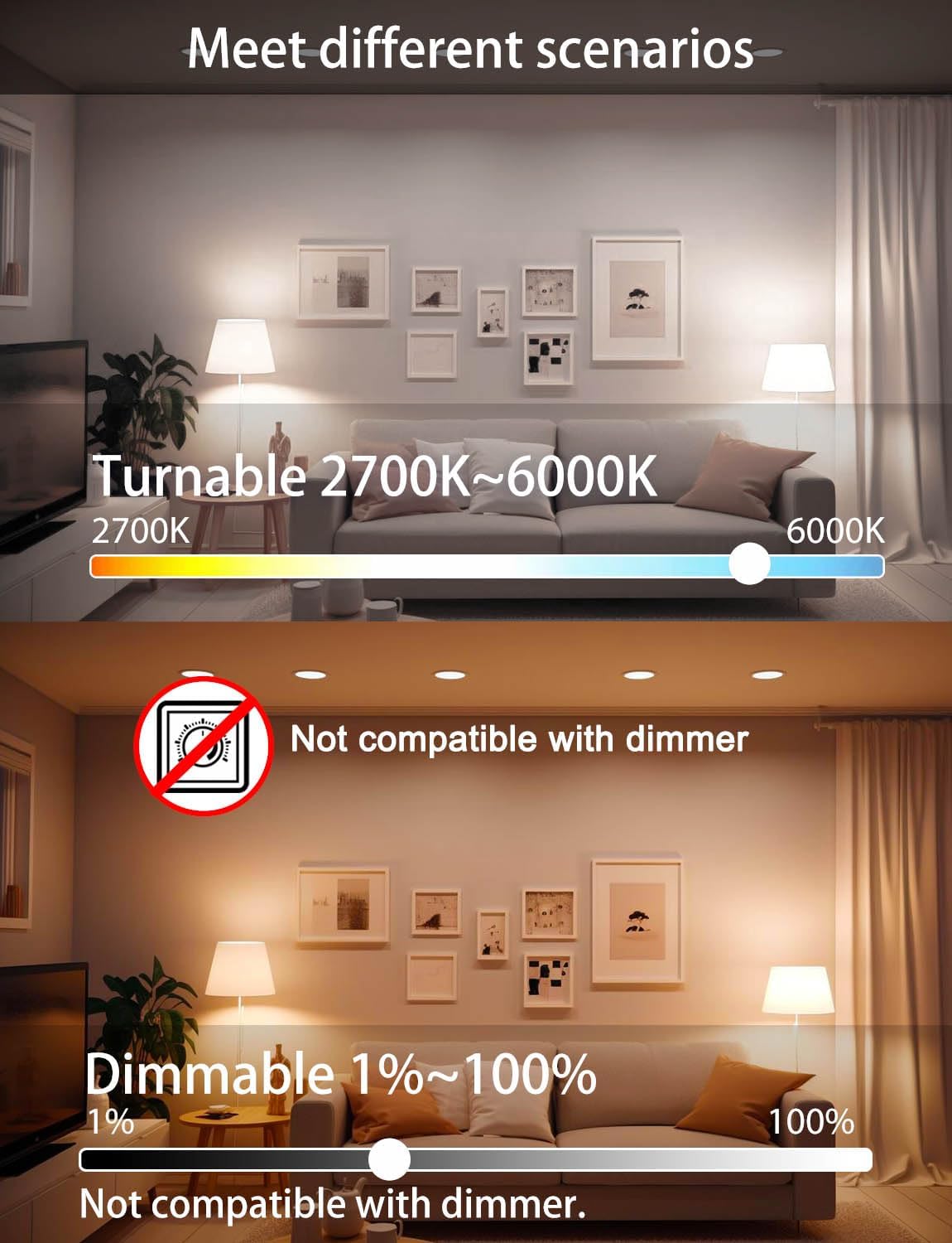 Adjustable color temperature: Yes, 2700K-6000K