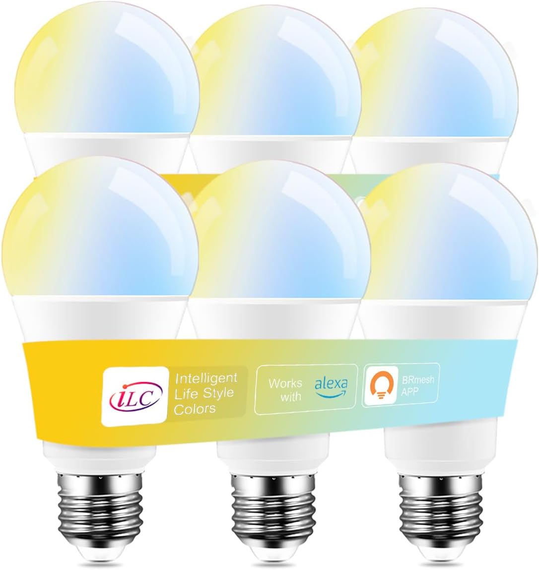 ILC Alexa Light Bulbs, 12W, Smart Light Bulbs Work with Alexa, Hub Required, 2700K-6000K Warm White to Daylight Turnable, A19 E26 (6 Packs)