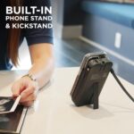 CONVENIENCE & VERSATILITY: Features a retractable AC plug for easy recharging from any wall outlet, a magnetic kickstand for hands-free device support, and a slide-out phone holder for added practicality during use.