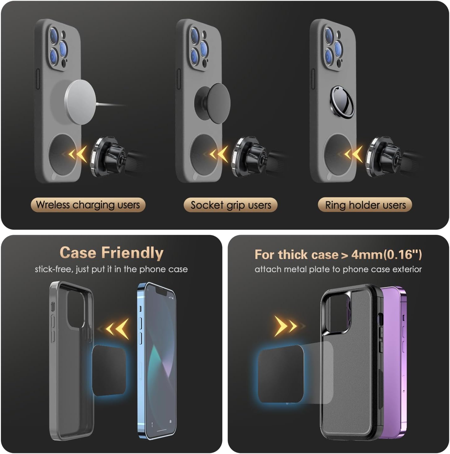 [Friendly for Wireless Charging & Ring Holders & Socket Grip Users] : Suitable for 95% of mobile phones! And friendly for wireless charging users & Mag Safe users & finger ring phone holder stand users & socket grip users, but NOTE : if you use any of these accessories with your phone, you will need to attach the included metal plate to the bottom of the back of the phone or phone case!