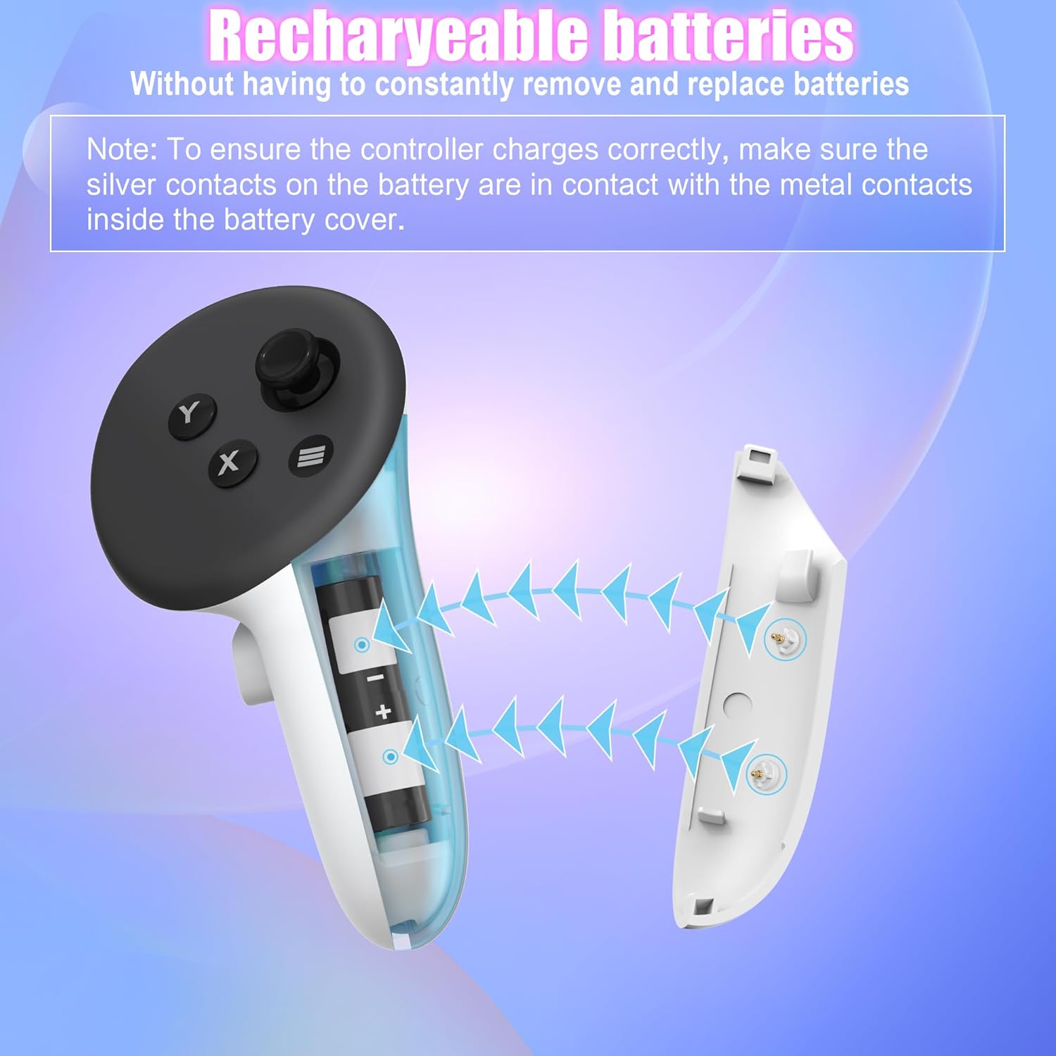 [ Battery Kit with 1,000+ Charge Cycles ]Includes 2 high-capacity rechargeable batteries (1,000+ cycles) with custom-fit Quest 3/3S/2 battery covers. 30% faster charging vs. standard AAs – eco-friendly and wallet-friendly.