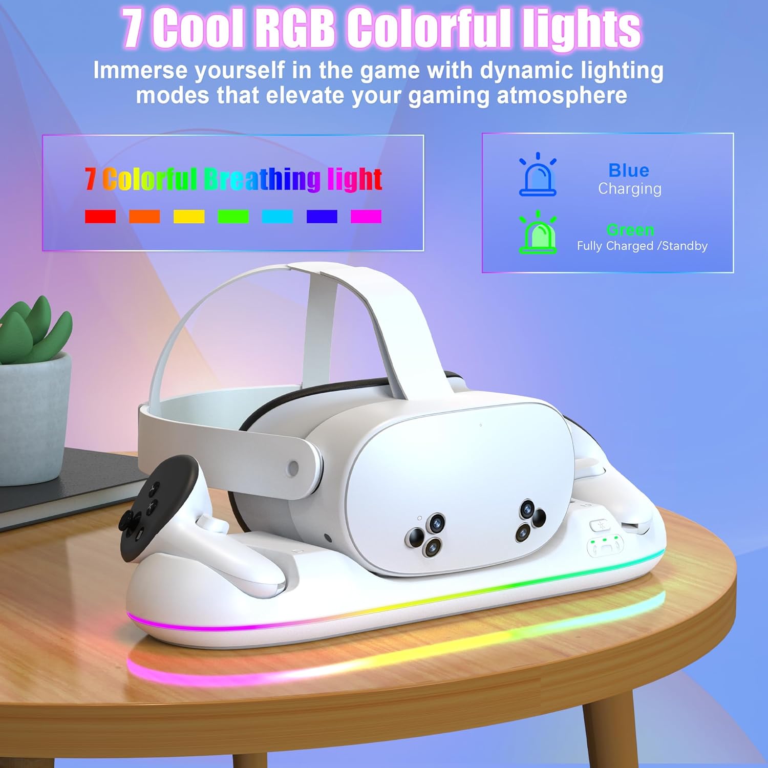 [Smart Magnetic Charging ]Charge your Meta Quest 3/3S/2 headset (full charge in ~2hrs) and controllers (~3.5hrs) simultaneously with PD 30W fast-charging technology. Features overcharge/overheat/short-circuit protection and an extra USB-C port for charging other devices.