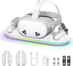 Magnetic Charging Dock for Meta Quest 3S/3/2-20W PD Fast Charging Station with RGB LED Light, Rechargeable Batteries, USB-C Cable & Adapter for VR Headset/Controllers (Q22)