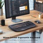 MEETION New Ergonomic Keyboard and Mouse Wireless Combo, Wave Keys Natural Typing, 2.4G Wireless Keyboard with Wrist Rest, 4 Adjustable DPI Optical Mouse, Computer/Laptop/Windows/Mac, Black