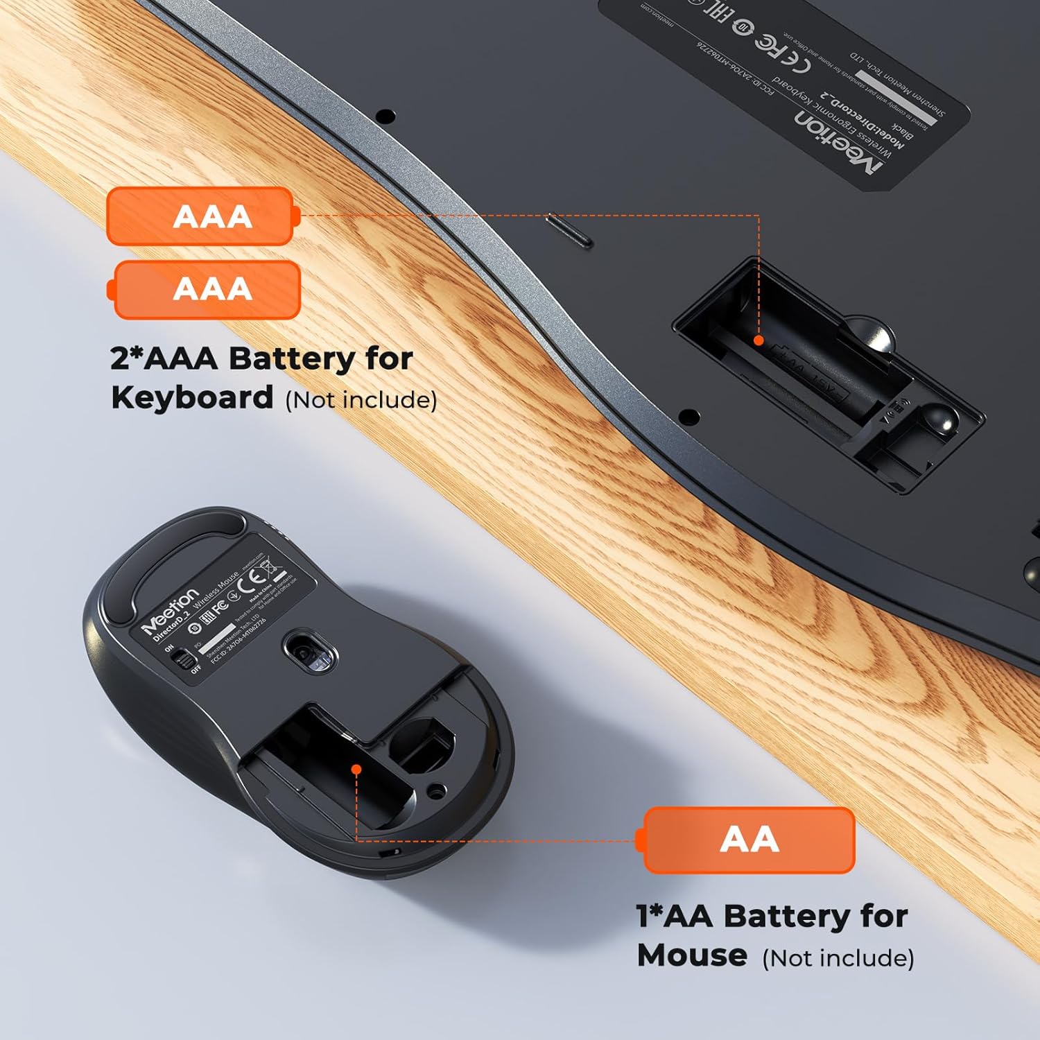 【EXTENDED BATTERY LIFE】 The mouse operates on one AA battery, and the keyboard uses two AAA batteries, providing long-lasting performance (batteries are not included in the package). Say goodbye to frequent battery replacements and enjoy uninterrupted use, making this set ideal for both home and office environments. Stable output also extends the equipment’s service life.
