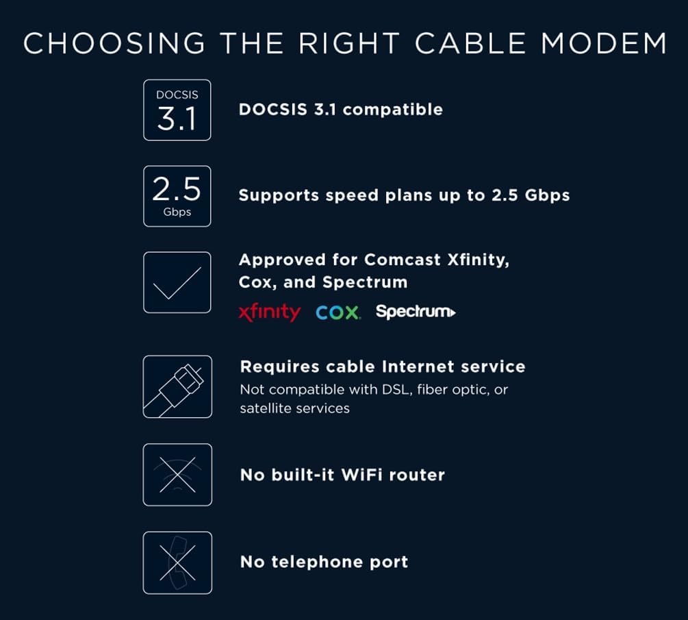 Approved for Comcast Xfinity, Cox, Spectrum, RCN and Astound and supports the fastest internet plans available. The products are residential only. Please verify your ISP requirements prior to purchase.