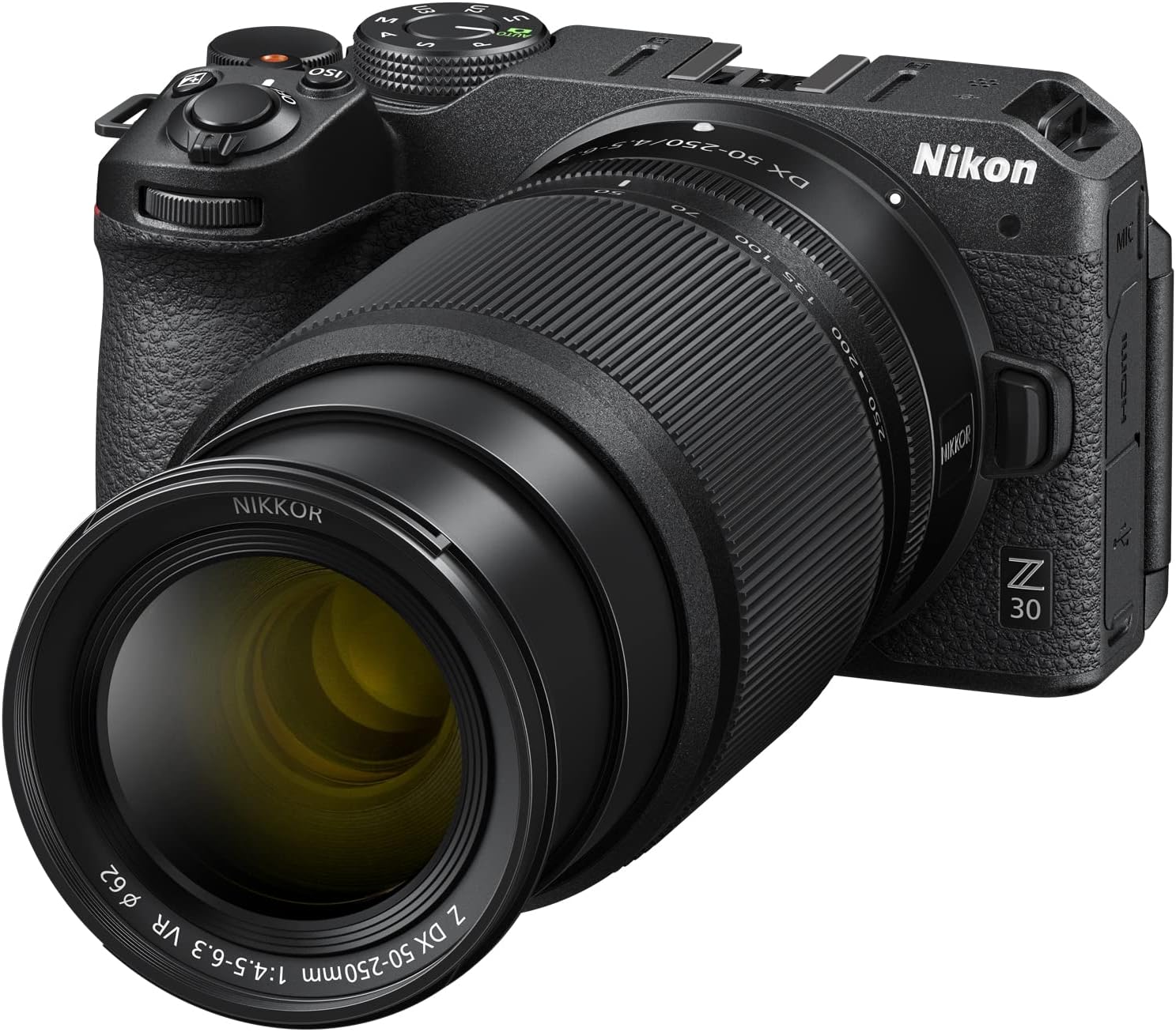 CAMERA INCLUDES: Nikon Z 30 Mirrorless Camera Body 1743 | Nikon NIKKOR Z DX 16-50mm f/3.5-6.3 VR Lens | Nikon NIKKOR Z DX 50-250mm f/4.5-6.3 VR Lens | BF-N1 Body Cap | LC-46B 46mm Snap-On Front Lens Cap | LF-N1 Rear Lens Cap | LC-62B Snap-On Front Lens Cap | LF-N1 Rear Lens Cap | EN-EL25 Rechargeable Lithium-ion Battery | AN-DC25 Camera Strap | UC-E24 USB Cable
