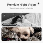 Auto Tracking & Color Night Vision – The pet camera indoor with phone app comes with auto Pan-Tilt tracking, stay focused on what matters through the Noorio app. 360° wide view angle room camera for bedroom captures day-like clarity in the dark with color Night Vision