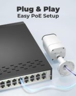 Plug and Play PoE System – A simple PoE connection makes it easier to set-up and install your home security camera system. With a single network cable, stretching up to 330ft, users can enjoy smooth security coverage of their entire house. This is perfect for both beginners and DIY camera enthusiasts.