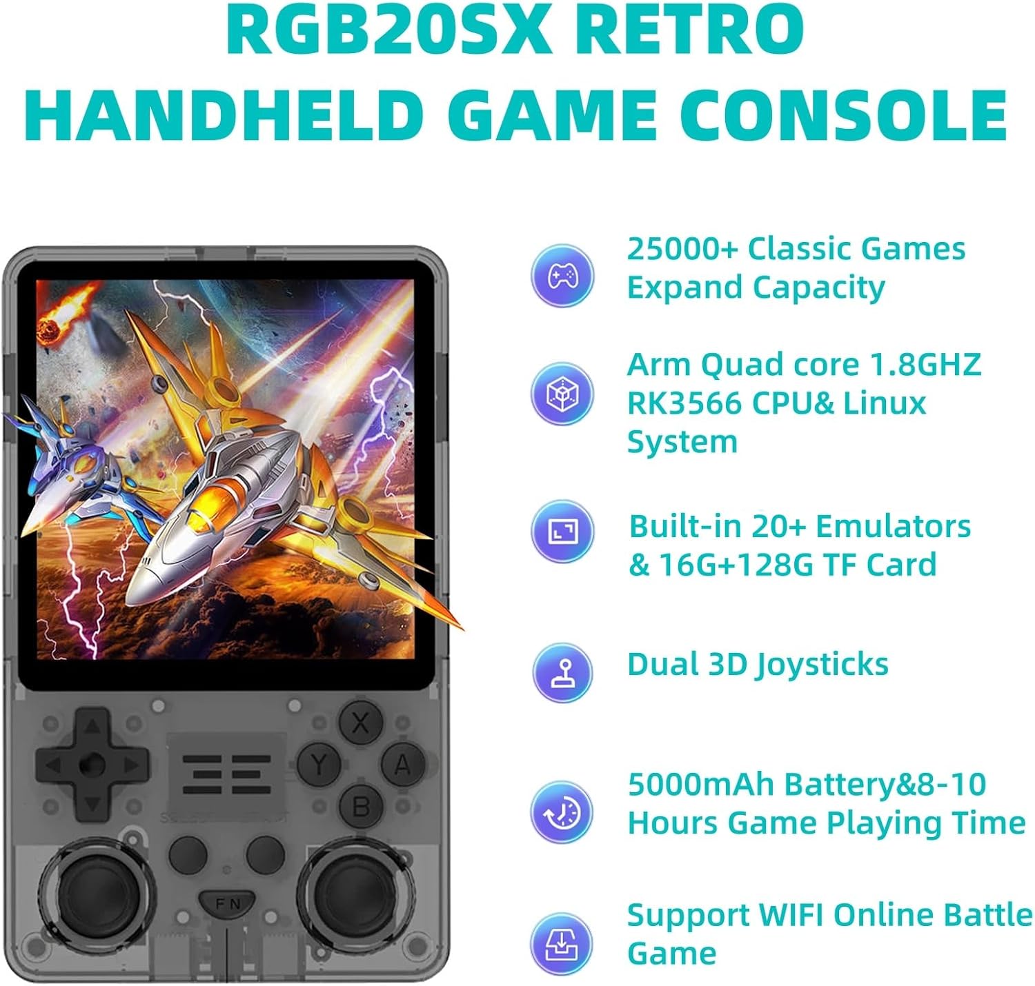 【128GB Large Storage with 25,000+ Preloaded Games & Multi-Platform Support】As a versatile Retro Portable Gaming Console, it comes with a 16+128GB TF card, preinstalled with over 25,000 classic games covering more than 30 gaming platforms. The open-source system allows adding emulators and games in compatible formats, making it easy to build your personalized game library. These Retro Video Consoles offer massive game resources, letting you start playing classic titles from different eras right out of the box