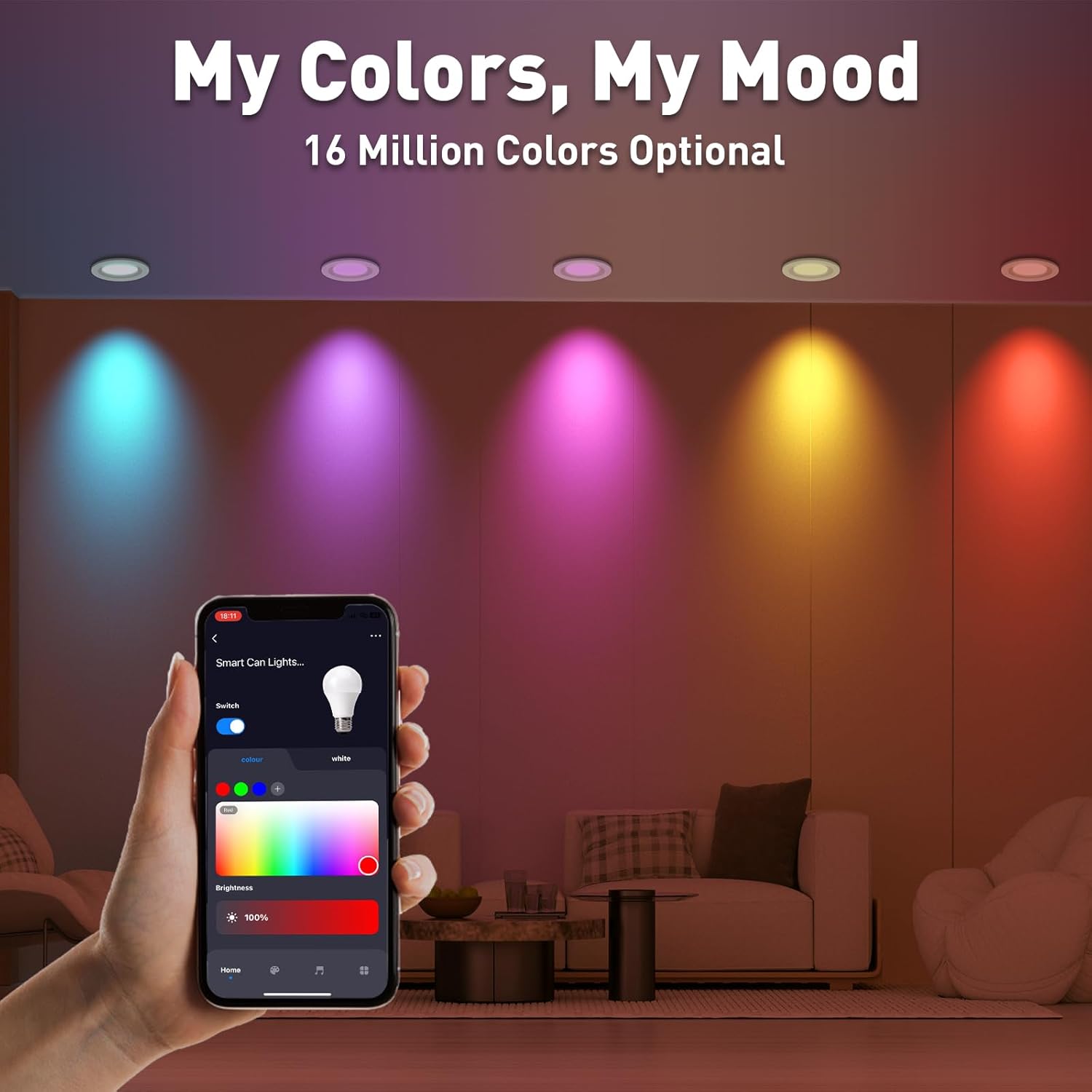 Color Customization: Choose from 16 million colors or adjust from warm white (2700K) to cool white (6500K) via our app, perfect for setting the mood for entertainment, gatherings, or enhancing your home decor. Create personalized lighting from a sunset warmth to a moonlit cool with ease.
