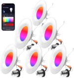 Smart Recessed Lighting 5/6 Inch – 6 Pack Wi-Fi RGB Color Changing LED Recessed Can Lights, 13W 1050LM Dimmable Retrofit Recessed Downlight Wafer Lights, Work with Alexa, Google, Siri