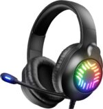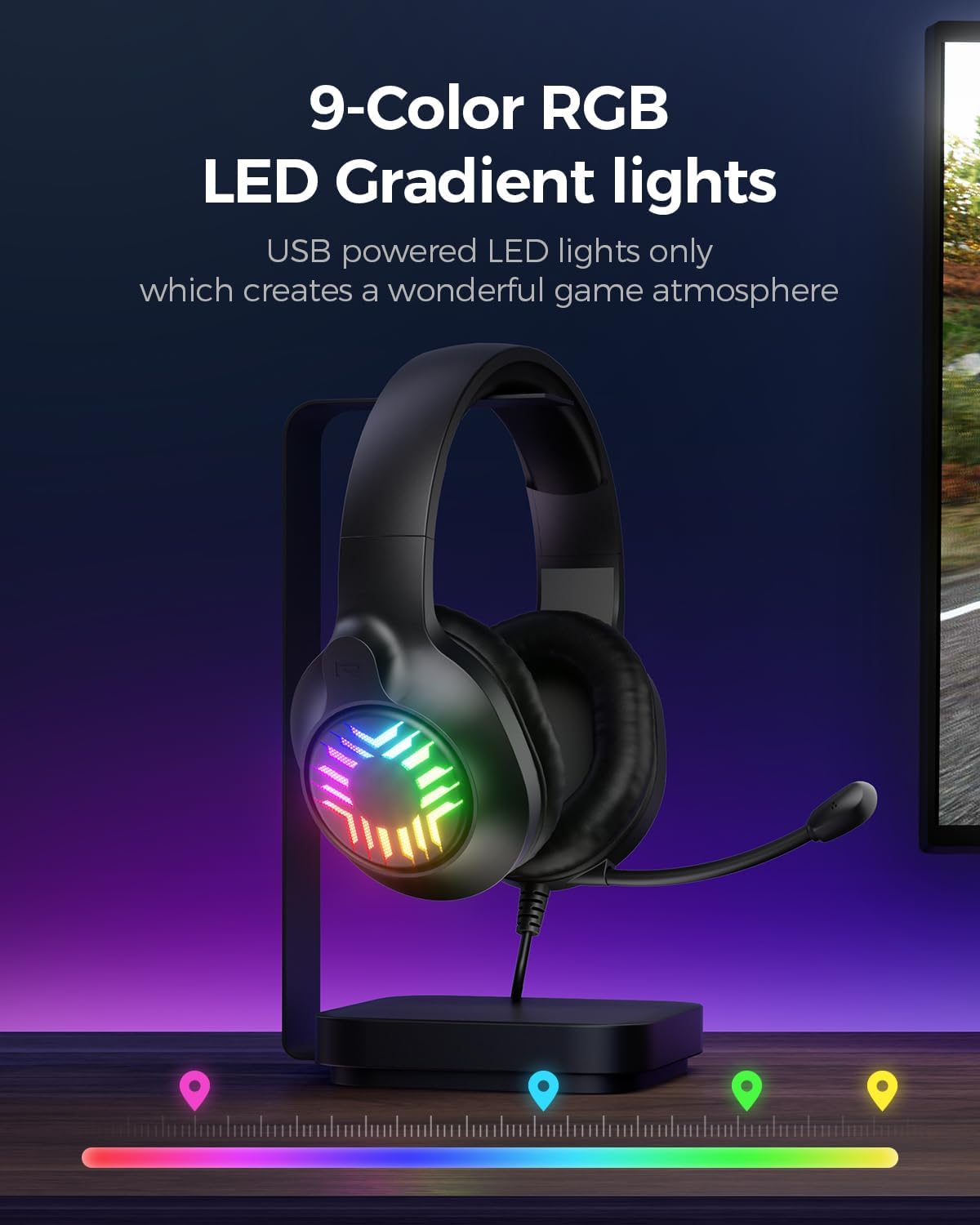 Stereo Gaming Headset, Wired Gaming Headphones Over Ear, Noise Cancelling Mic, 9 Colors Gradient RGB Ligh, Soft Memory Earmuffs for PC, Xbox One/Series PS5 PS4 Controllers, Nintendo (Black)