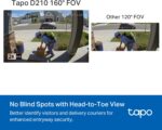 Introducing the Tapo D210: Transform your doorbell experience with this smart video doorbell, featuring a powerful 6400mAh rechargeable battery. Choose battery mode for added flexibility. Capture every moment in stunning 2K resolution, day or night, with a 160° DFOV wide-view design and built-in spotlights ensuring no detail is missed. Enjoy seamless, hands-free home control with Alexa and Google Assistant compatibility. *𝗗𝗶𝘀𝗰𝗹𝗮𝗶𝗺𝗲𝗿𝘀: 1. microSD card sold separately. Actual storage capacity depends on the size of the microSD card used. 2. Cloud storage service available via Tapo Care subscription 3. Compatible with Alexa and Google Assistant-supported displays. User experience varies based on connected services. 4. Chime is for indoor use only. 5. Battery life depends on recording time, live view usage, device settings, router specifications, and environmental factors.