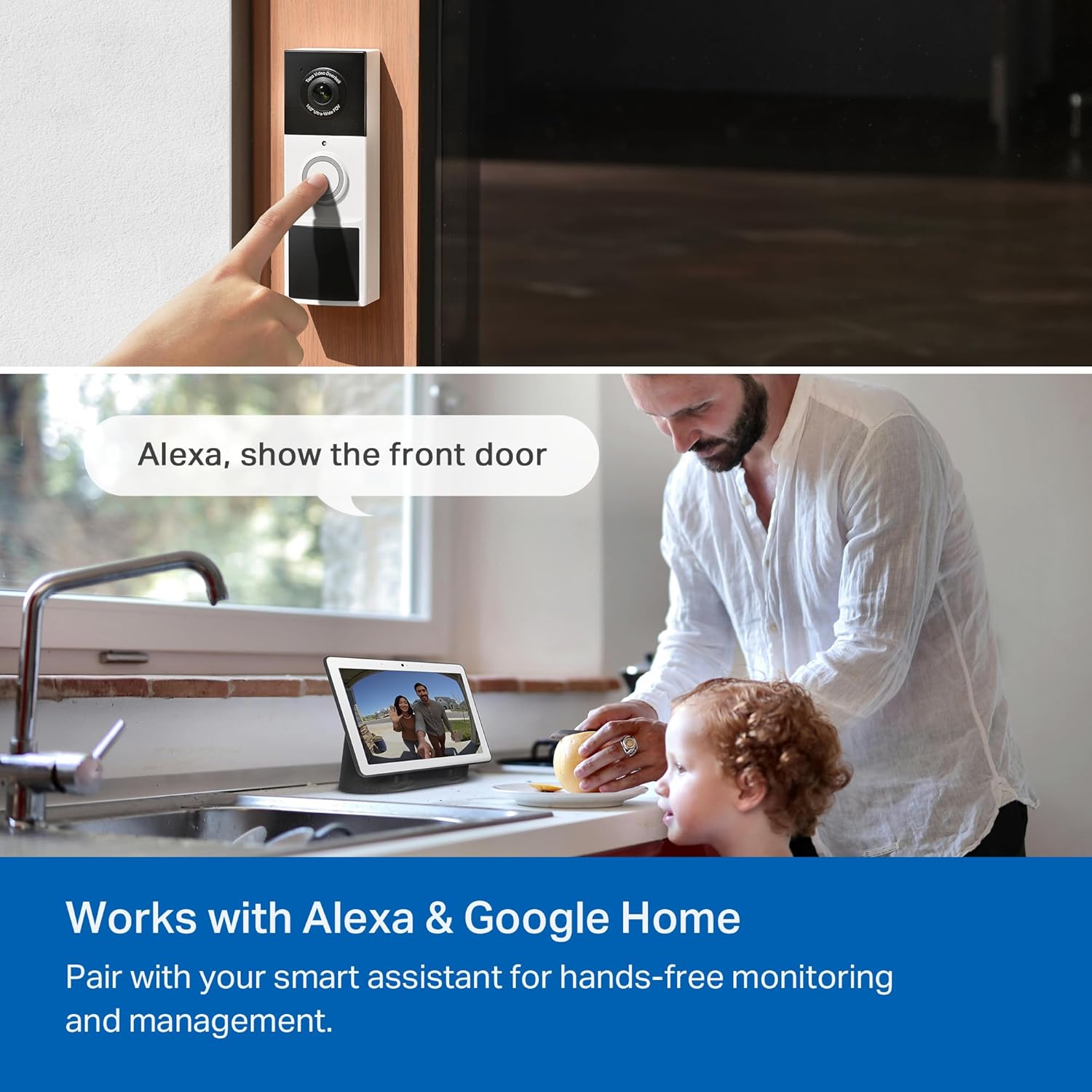 【Works with Alexa and Google】Use your favorite screen assistant like Alexa and Google with the D210 doorbell camera to view and answer those at your door.