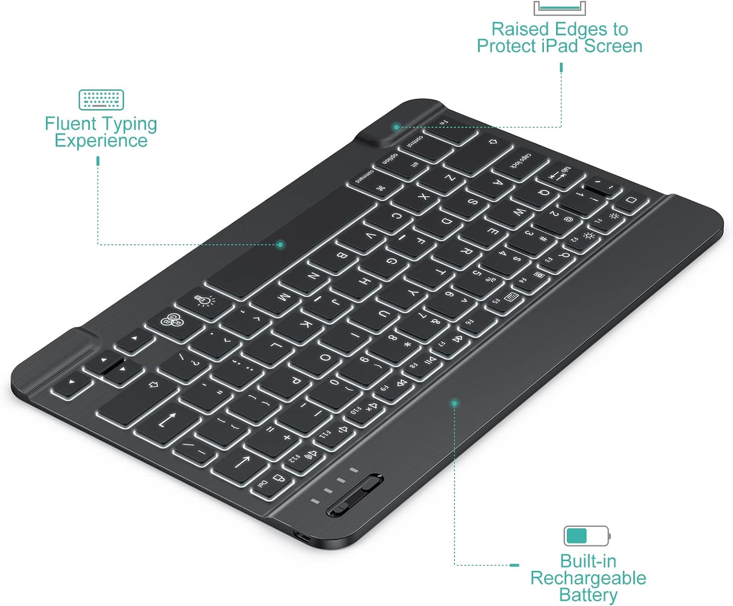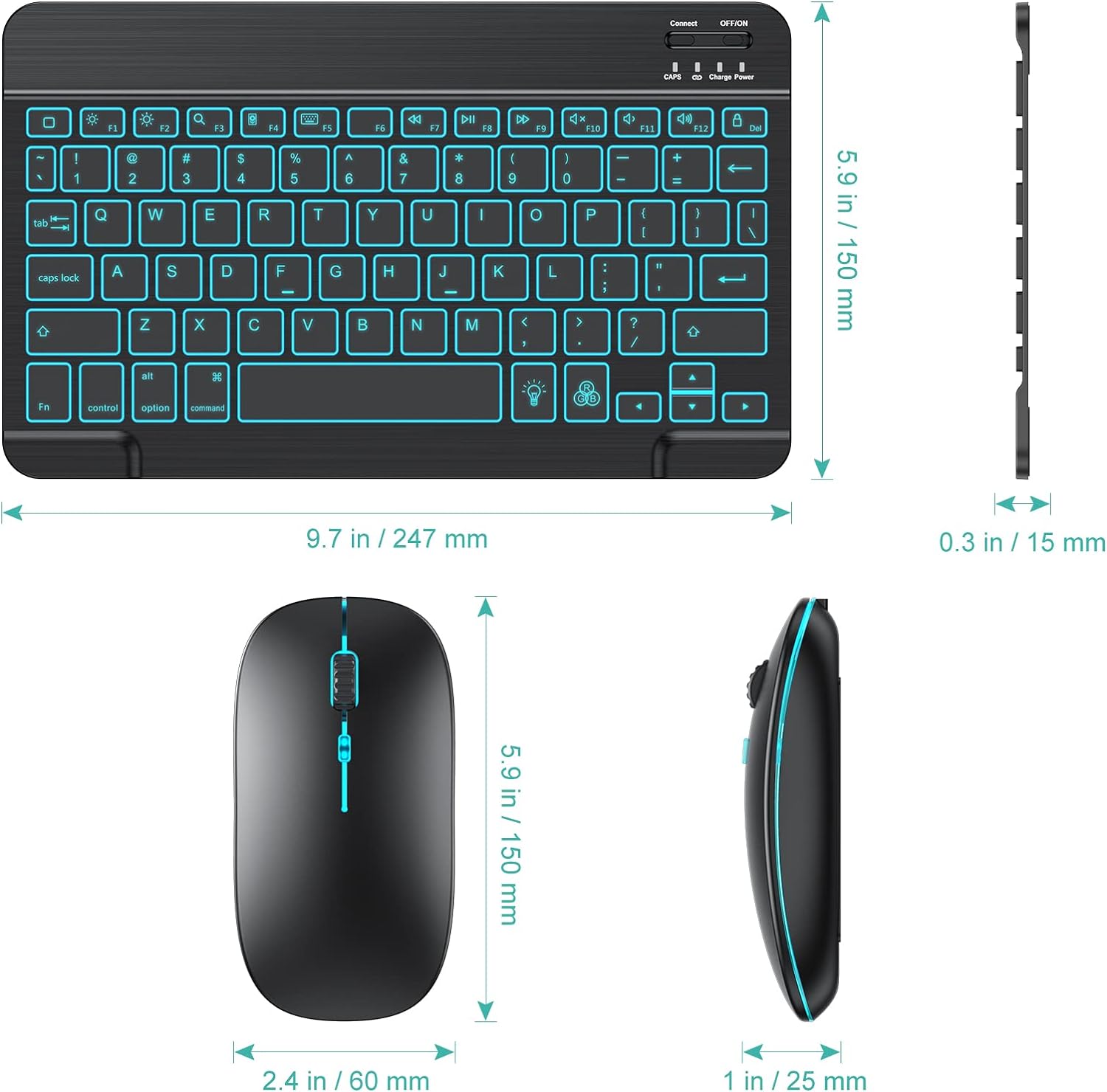 TECURS Bluetooth Keyboard and Mouse Combo for iPad – Rechargeable Wireless Keyboard & Mouse with 7-Color Backlit Compatible with iPad 10th/9th/8th Gen, iPad Pro/Air/Mini, iPhone15/14/13 Pro, Black