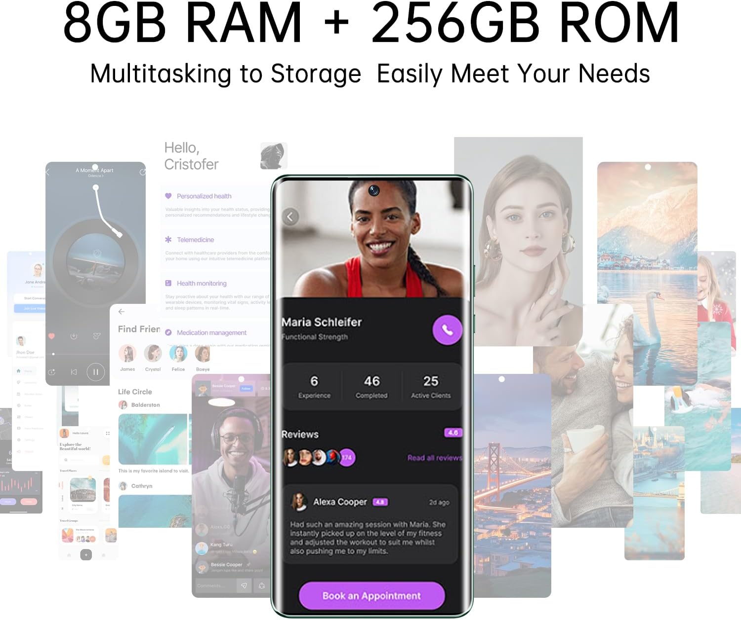 Unlocked Phone Reno 11 Pro 8GB+256GB Unlocked Android Phone 50MP+13MP Unlocked Cell Phone 6000 mAh Large Battery Camera Smartphone 4G Dual SIM (Jade Green)